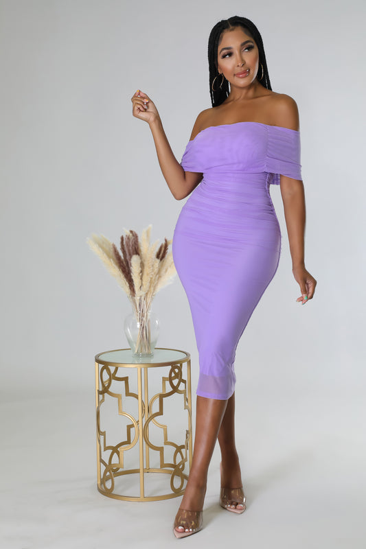 Shirred Mesh Bra Midi Dress